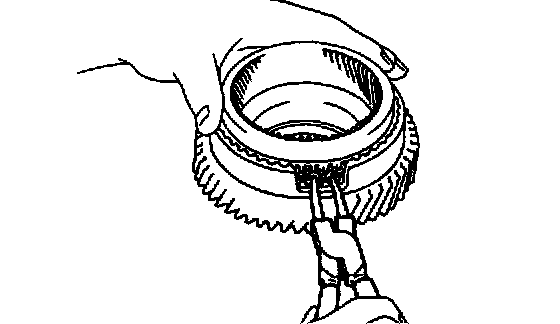 While pushing down the ring gear, squeeze the snap ring end with needle-nose pliers, and install it into the groove.