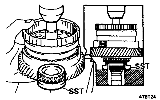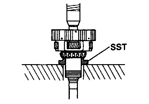 Using Special Service Tools (SST), press in the 2 outer races to the gear both side.