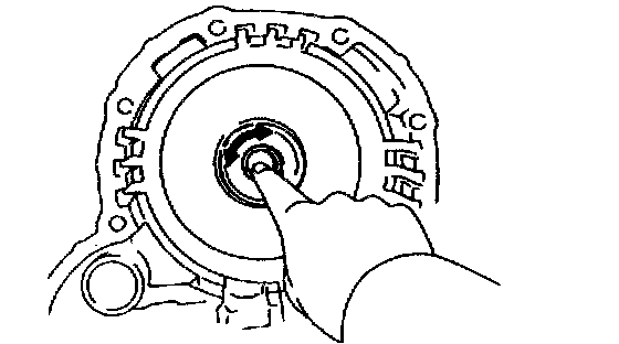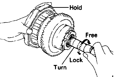 b. Hold the overdrive direct clutch and turn the intermediate shaft. The shafts should turn freely clockwise and should lock counterclockwise.