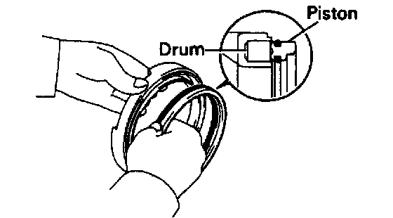 b. Press the piston into the drum, being careful not to damage the O-rings.