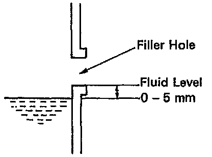 - Check the fluid level at the normal operating temperature 70 - 80°C (158 - 176°F) and add as necessary.