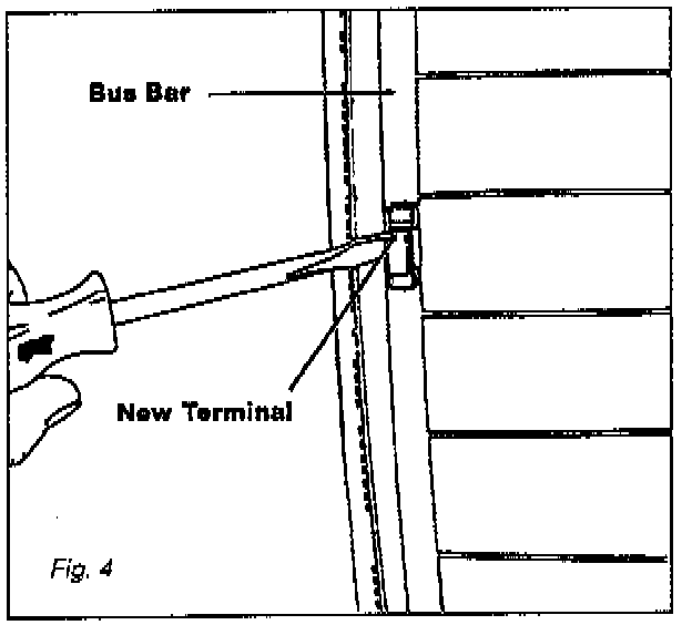 1. Position the new terminal on the bus bar in the appropriate position and hold it in place with pliers or a screwdriver as illustrated (Figure 4).