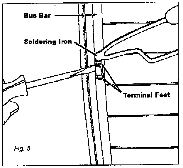 The pre-solder on the terminal will temporarily hold the terminal in place. Use additional solder if required for proper terminal-to-bus adhesion (P/N 00250-0W020).
