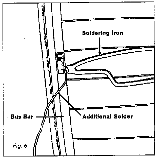 2. Working as quickly as possible (30 to 60 seconds) to avoid overheating the rear window (using a 200 waft soldering iron or gun), apply heat to the terminal feet (Figure 5).