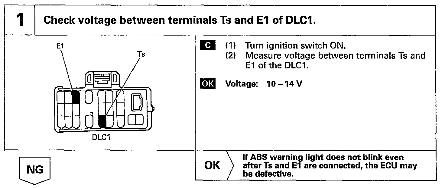 The sensor check circuit detects abnormalities in the speed sensor signal which cannot be detected with the DTC check. Connecting terminals Ts and E1 of the DLC1 in the engine compartment starts the check