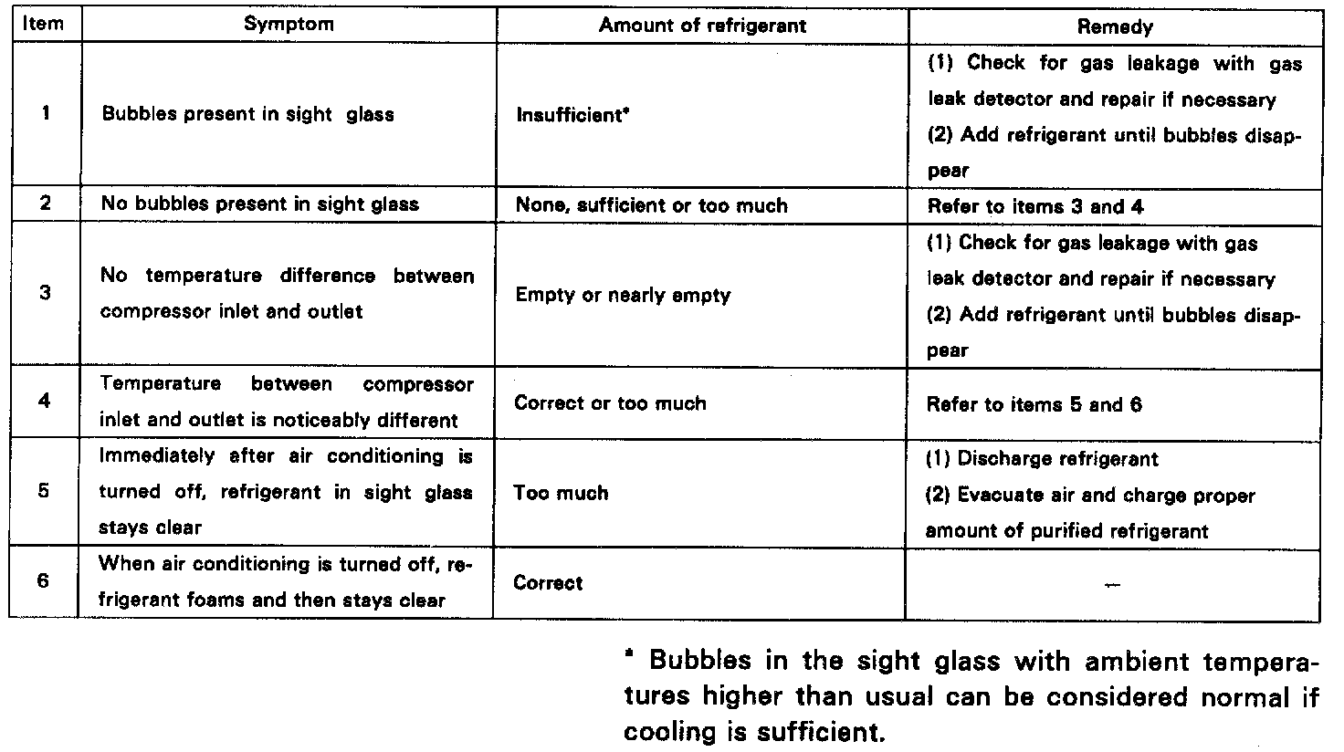 Observe the sight glass on the liquid tube.