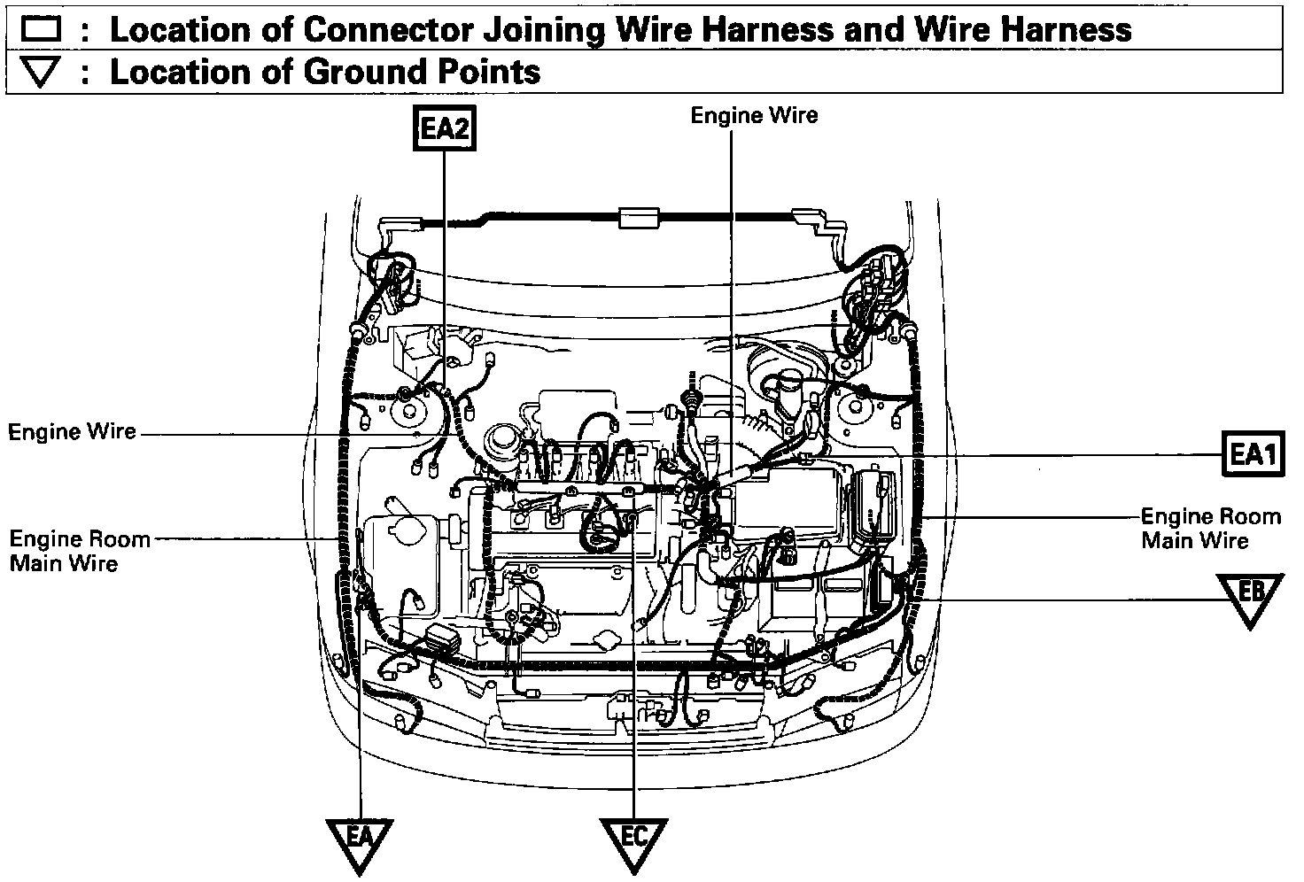 Location Of Connector Joining Wire Harness And Wire Harness Ground Points (Fig 34):