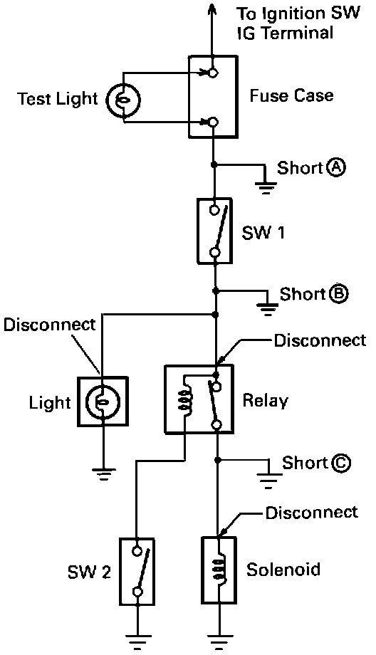 d. Disconnect and reconnect the connectors while watching the test light.