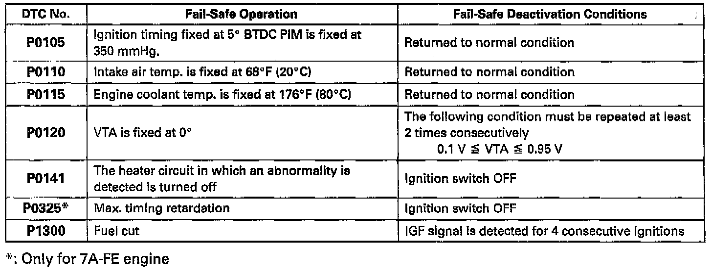 If any of the following codes is recorded, the ECM enters fail-safe mode.