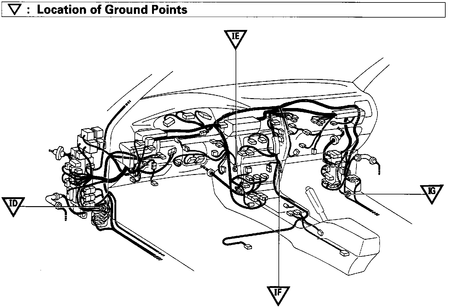 Location Of Connector Joining Wire Harness And Wire Harness Ground Points (Fig 34):