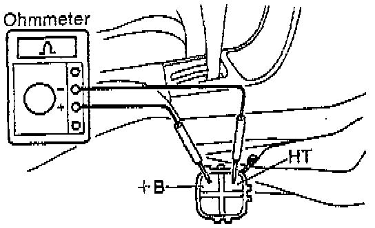 - Using an ohmmeter, measure the resistance between the terminals +B and HT.