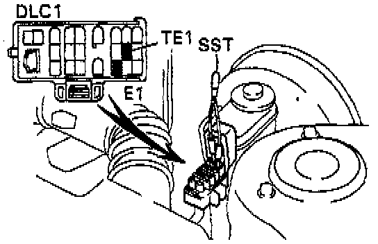 - Using SST, connect terminals TE1 and E1 of the data link connector 1. SST 09843-18020