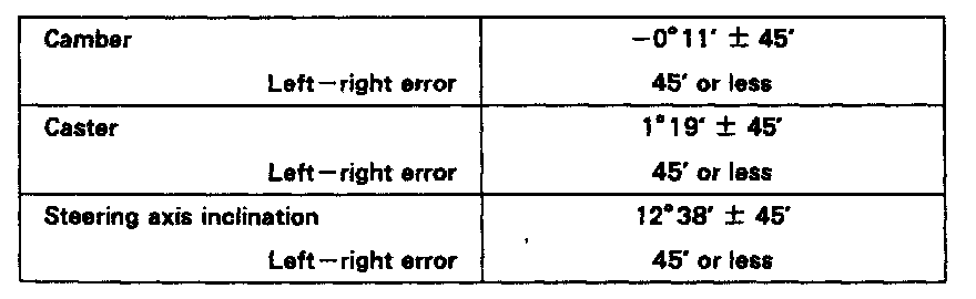ALIGNMENT SPECIFICATIONS