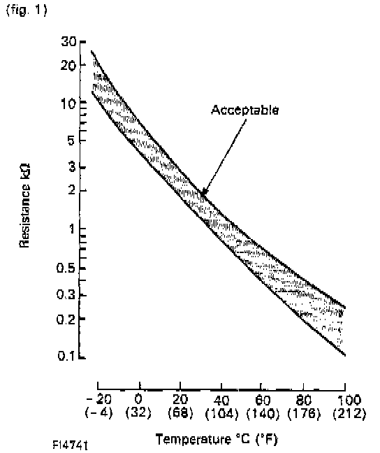 The lower the intake air temperature, the greater the thermistor resistance value, and the higher the intake air temperature, the lower the thermistor resistance value (See Fig. 1.).