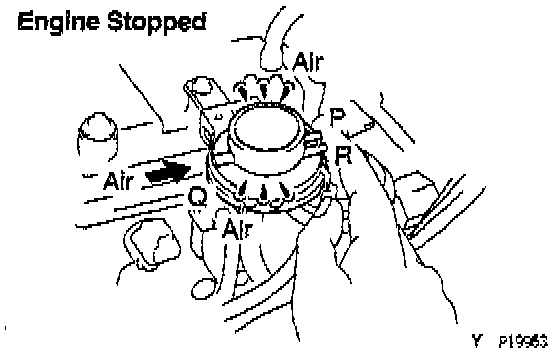 - Blow air into port Q, and check that the air passes through to the air filter freely.