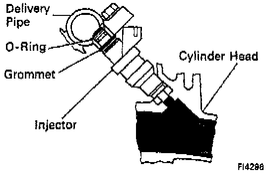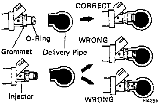4. Install the injector in the delivery pipe and cylinder head as shown in the illustration.