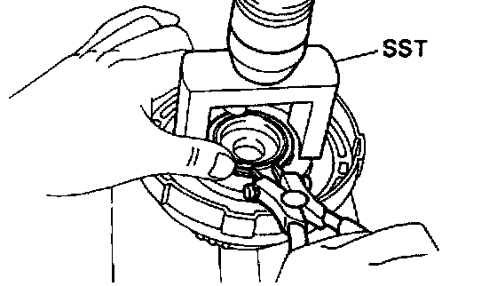 c. Install the snap ring with snap ring expander. Be sure the end gap of the snap ring is not aligned with the spring retainer claw.