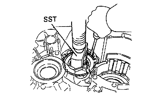 a. Using SST and press, press in the flange until the snap ring is free from the flange.