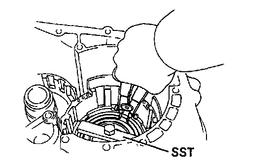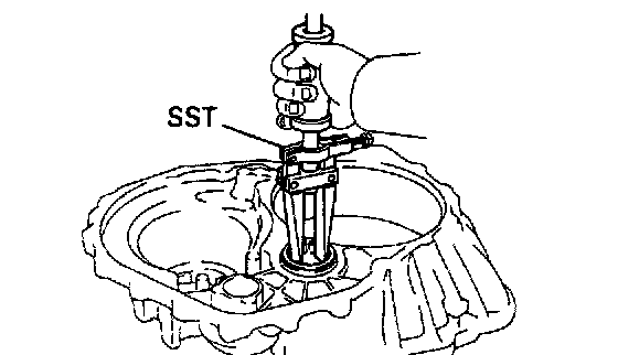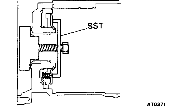 a. Set SST and tighten the bolt gradually to compress the springs until the snap ring is free from the spring seat.