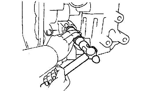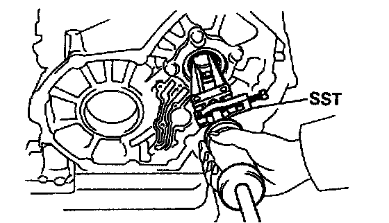 b. Using a 14 mm socket wrench and hammer, drive in a new oil seal.