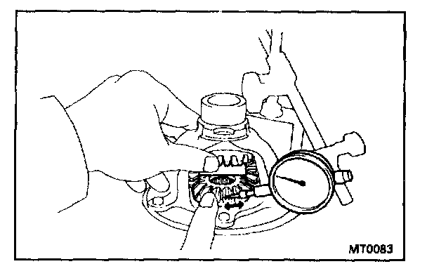 d. Using a dial indicator, check the side gear backlash.