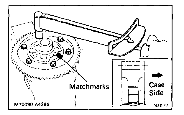 HINT: Align the matchmarks on the differential case and contact the ring gear.
