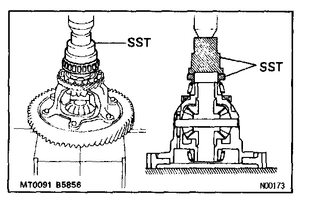 b. Using SST and a press, install new side bearings to the both sides of the case.