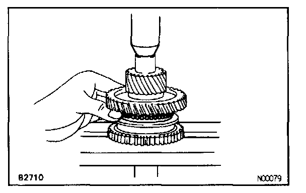 e. Using a press, install the 1st gear and No.1 hub sleeve.