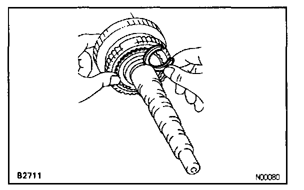 a. Place the synchronizer ring on the gear and align the ring slots with the shifting keys.