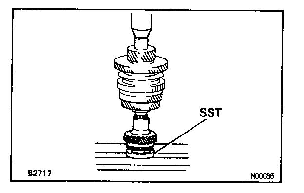 b. Using SST and a press, install the 4th driven gear and rear ball bearing.