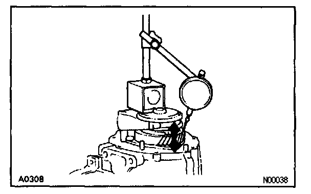 Using a dial indicator, measure the thrust clearance.