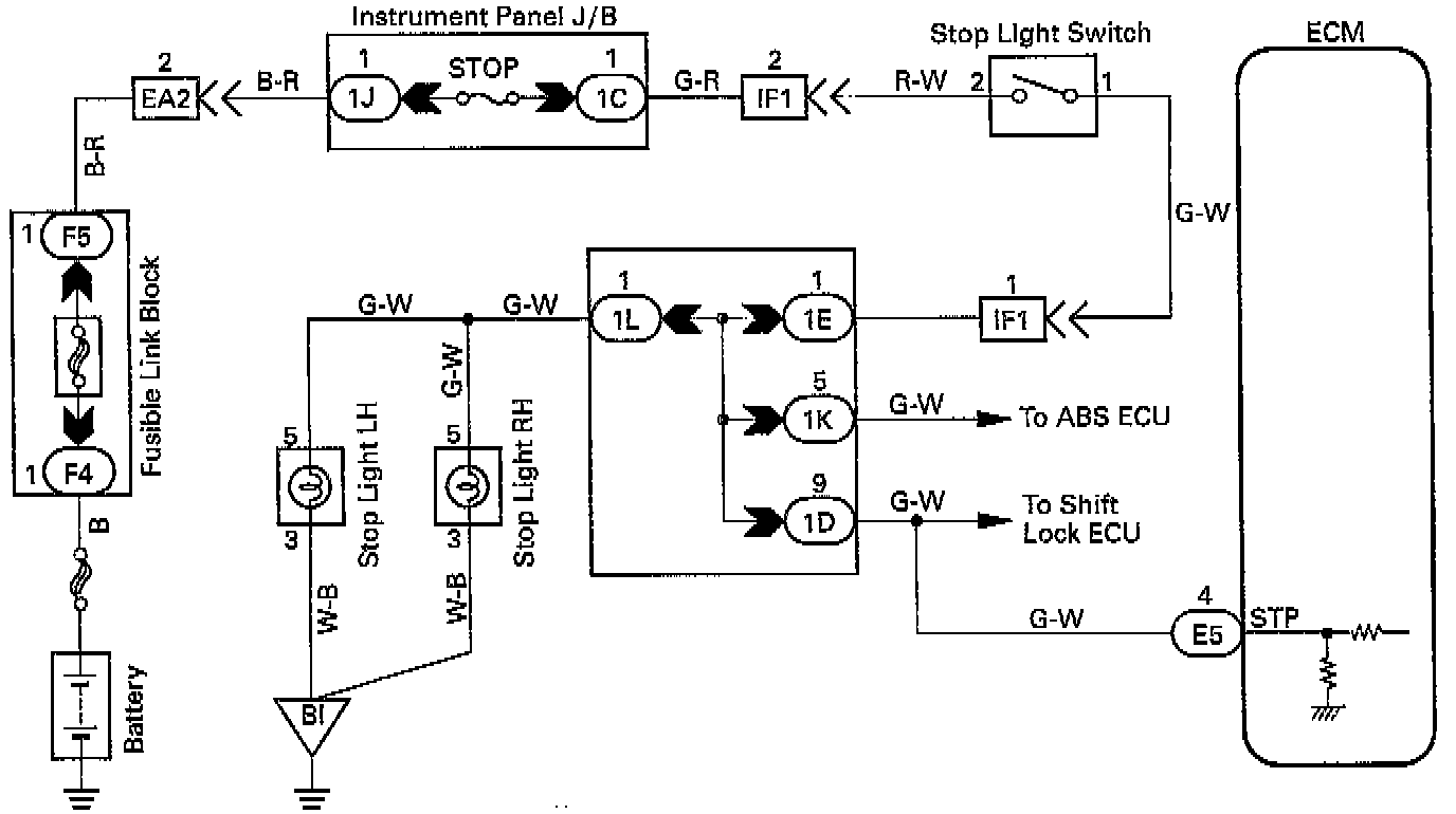 When the brake pedal is operated, this switch sends a signal to ECM. Then the ECM cancels operation of he lock-up clutch while braking is in progress.