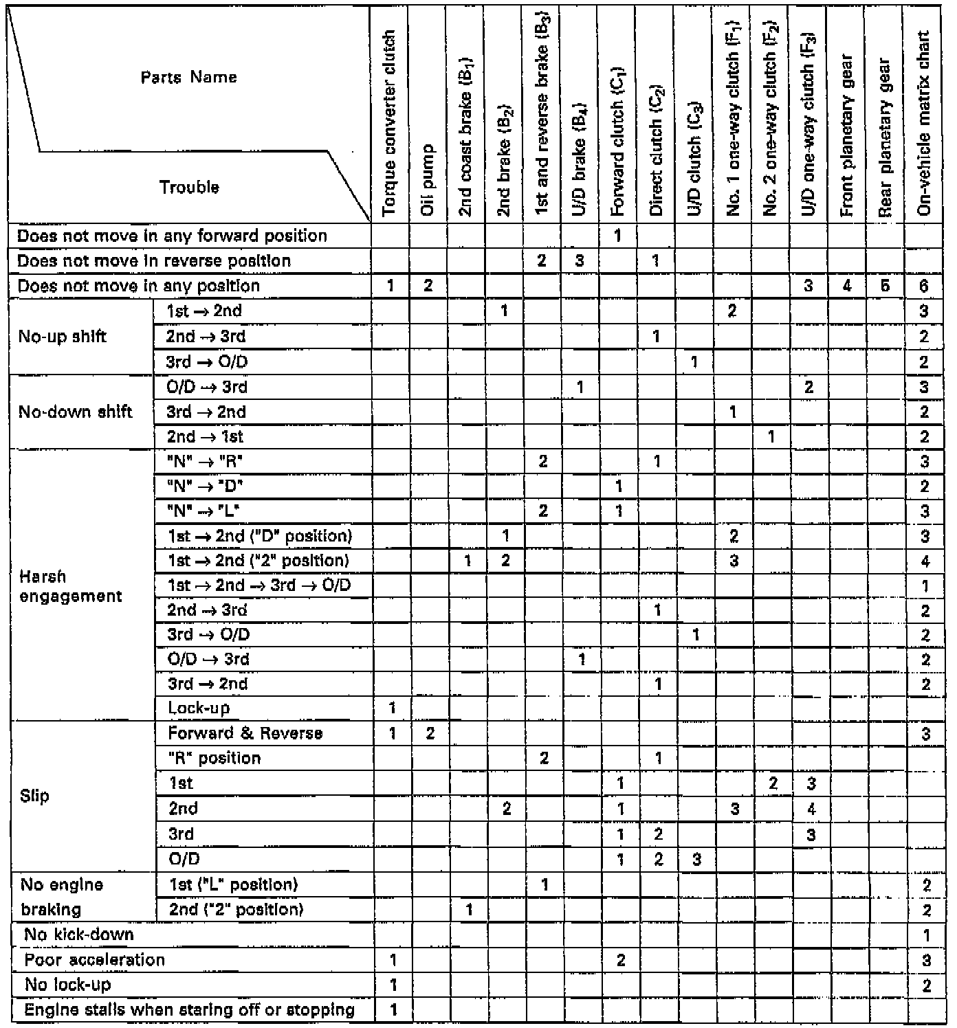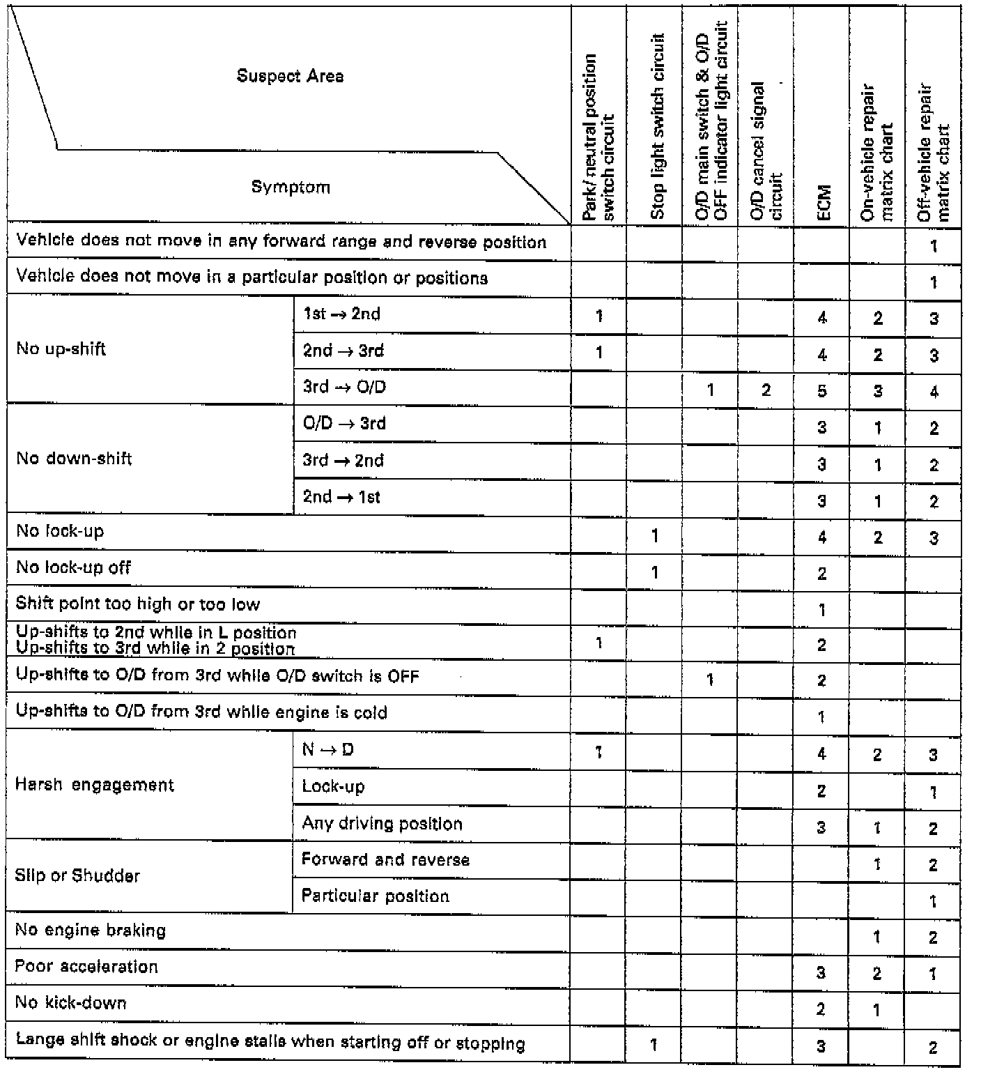 2: On-Vehicle Repair Matrix Chart