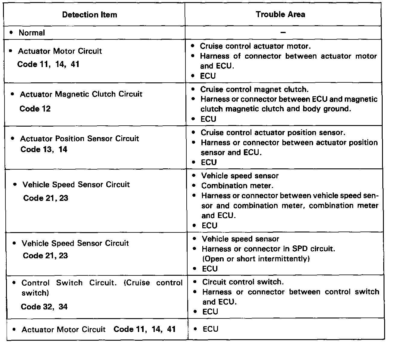 2. If the trouble still reappears even though there are no abnormalities in any of the other circuits, then check or replace the cruise control FCU as the last step.