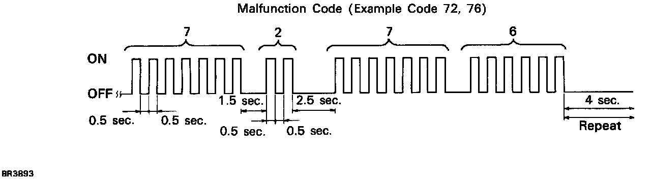 - See the list of diagnostic trouble codes. - If every sensor is normal, a normal code is output (A cycle of 0.25 sec. ON and 0.25 sec. OFF is repeated).
