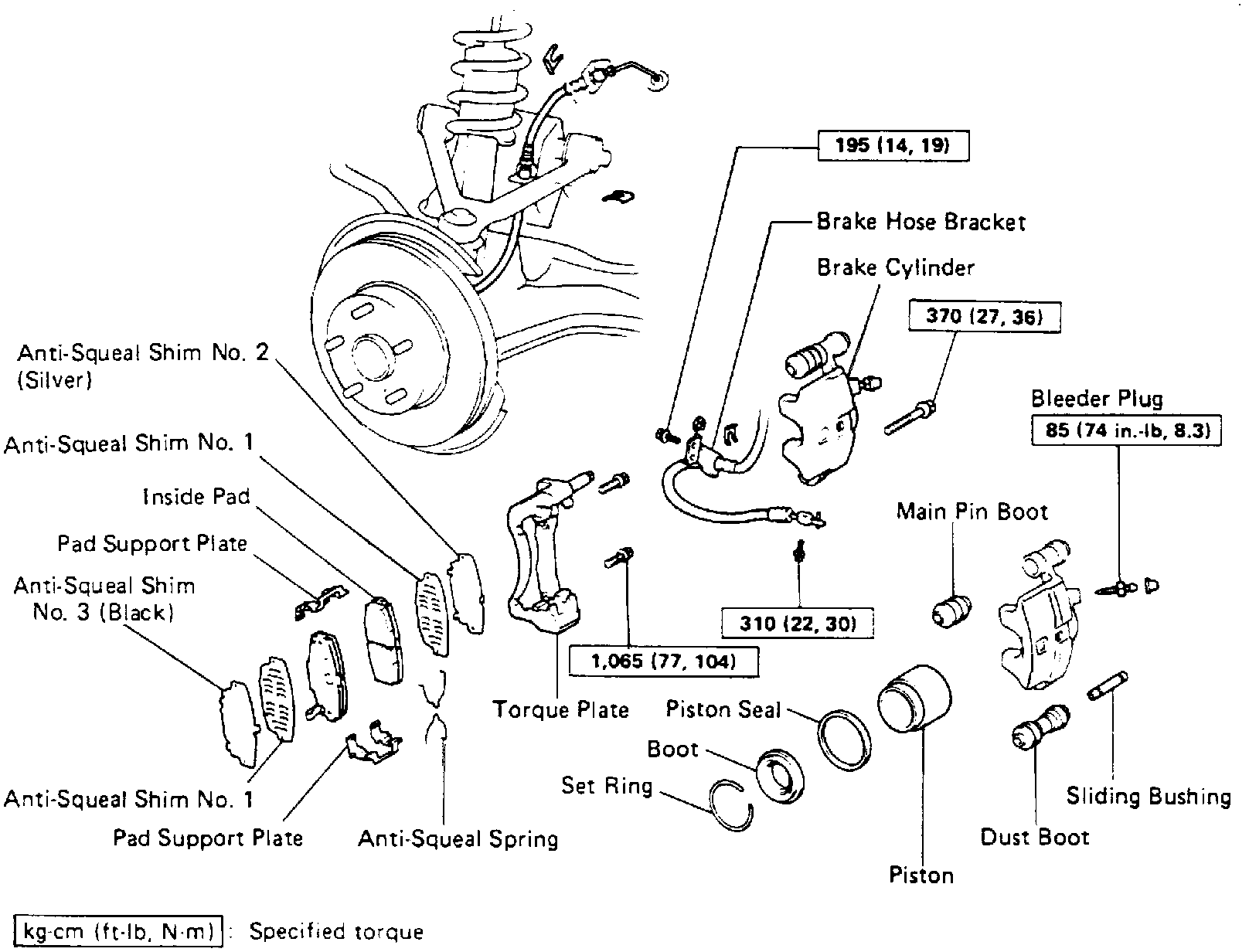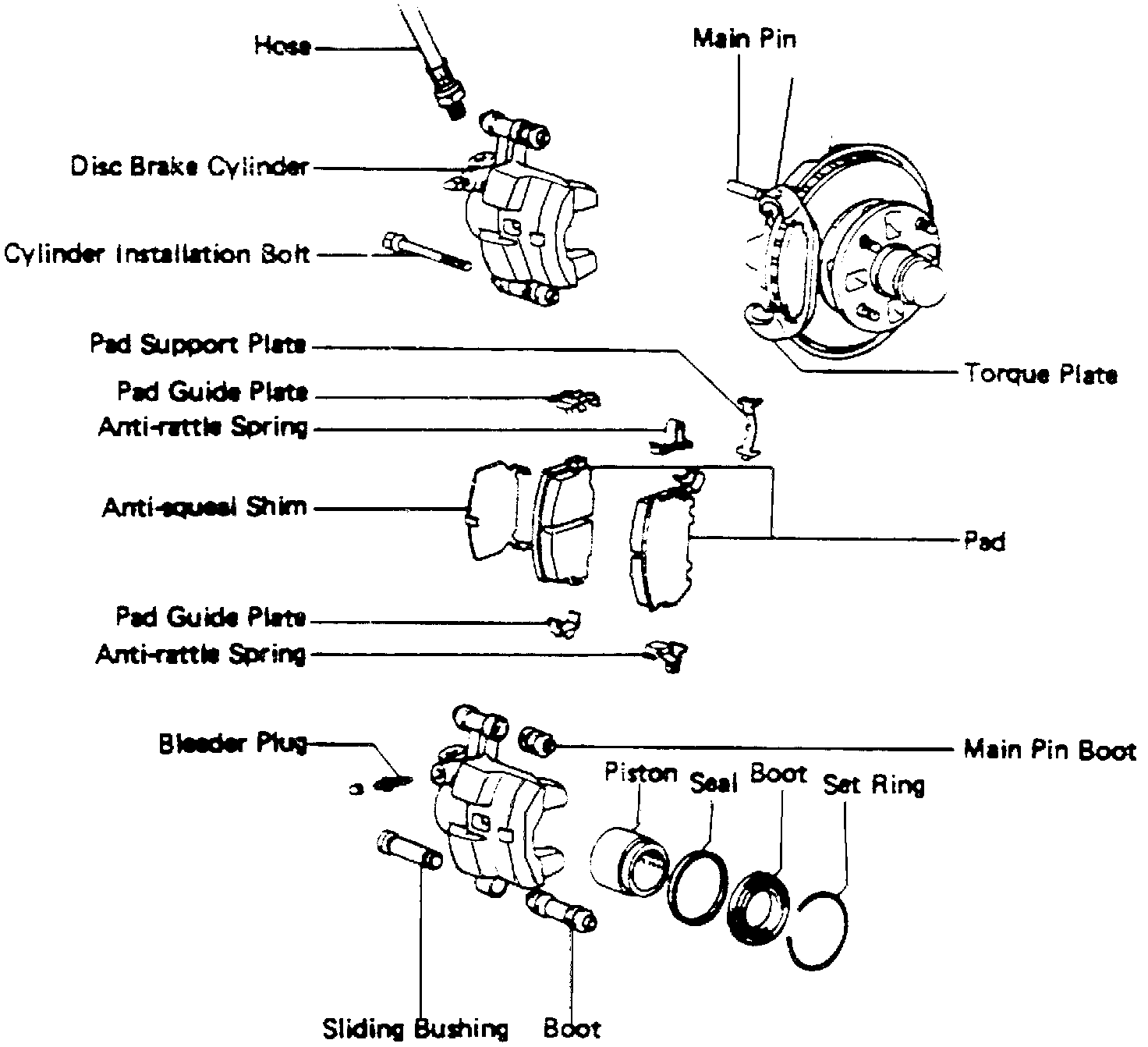 Fig. 12 Exploded View Of Front Disc Brake Assembly.:
