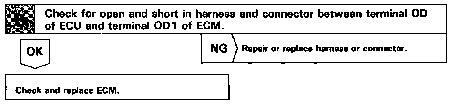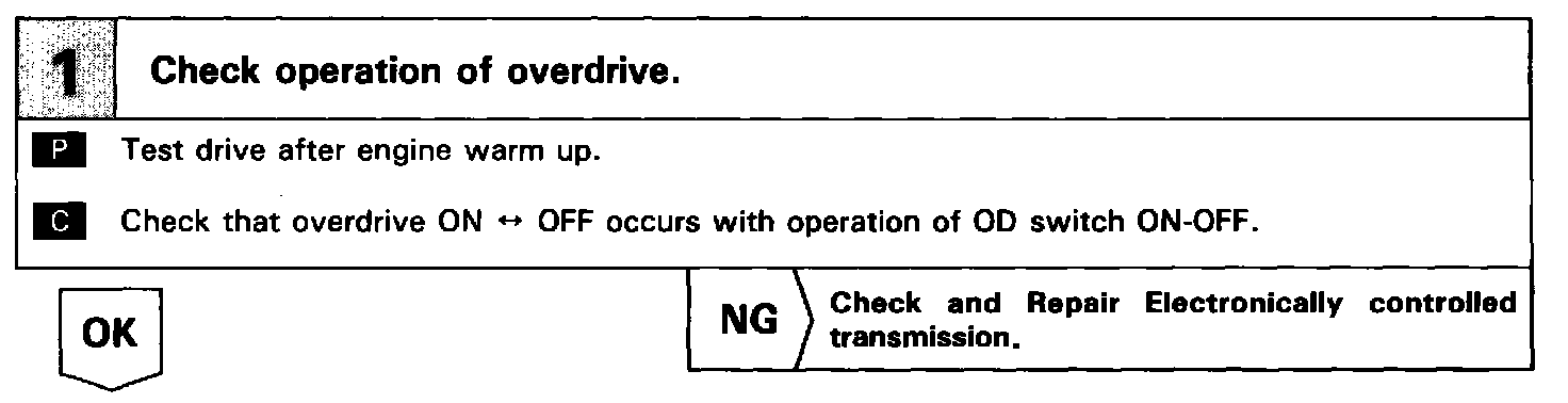 If vehicle speed down, also when terminal ECT of the cruise control ECU receives down shifting signal, it sends a signal from terminal OD to ECM to cut overdrive until the end of the uphill slope, and the gear shifts are reduced and gear shift points in the electronically controlled transmission are changed.