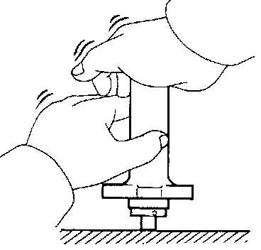 (b) Hold the tensioner with both hands and push the push rod strongly against the floor or wall to check that it doesn't move.