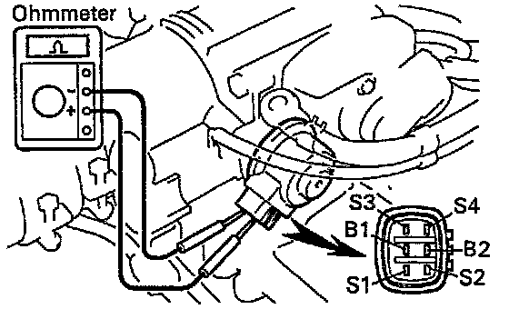 - Using an ohmmeter, measure the resistance between the terminals (B1 (or B2) to others).