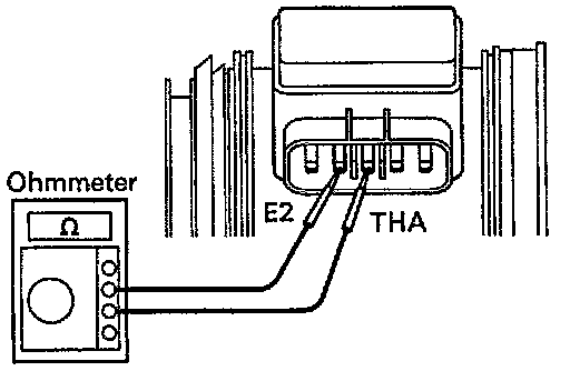 - Using an ohmmeter, measure the resistance between terminals THA and E2.