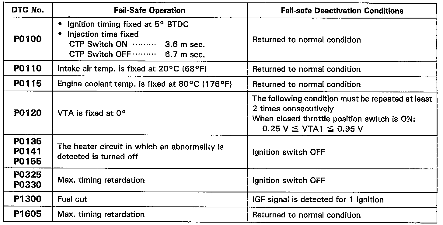 If any of the following codes is recorded, the ECM enters fail-safe mode.