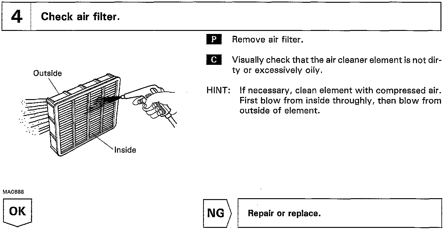In many cases, by carrying out the basic engine check shown in the above flow charts, the location causing the problem can be found quickly and efficiently. Therefore, use of this check is essential in engine troubleshooting.