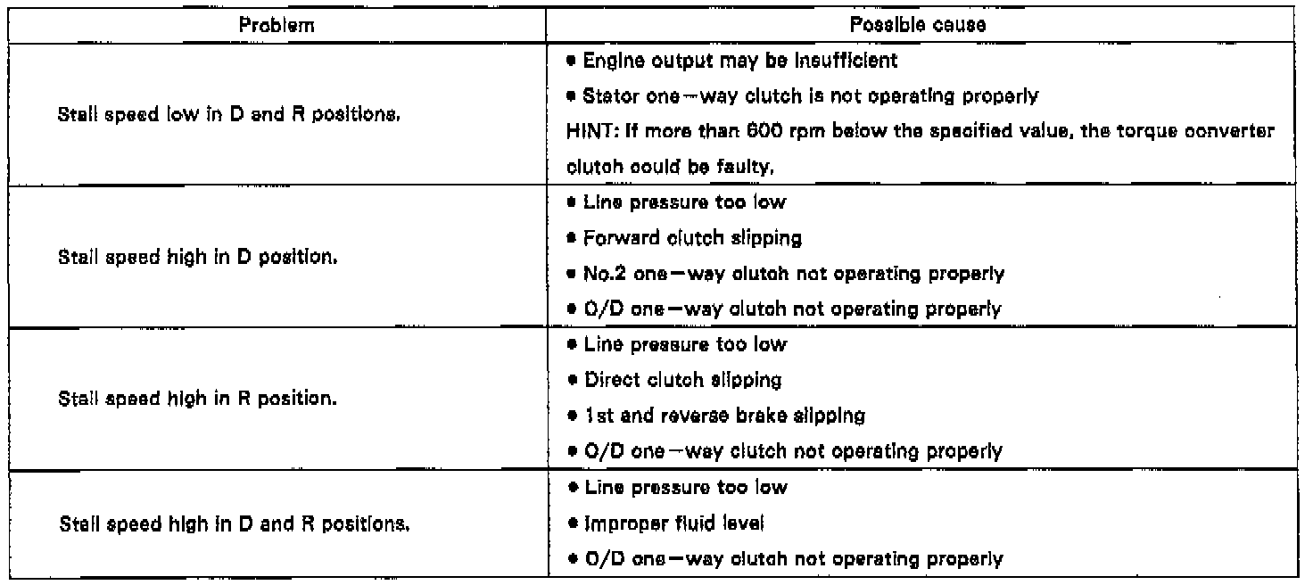 STALL TESTThe object of this test is to check the overall performance of the transmission and engine by measuring the stall speeds in the D and R positions.