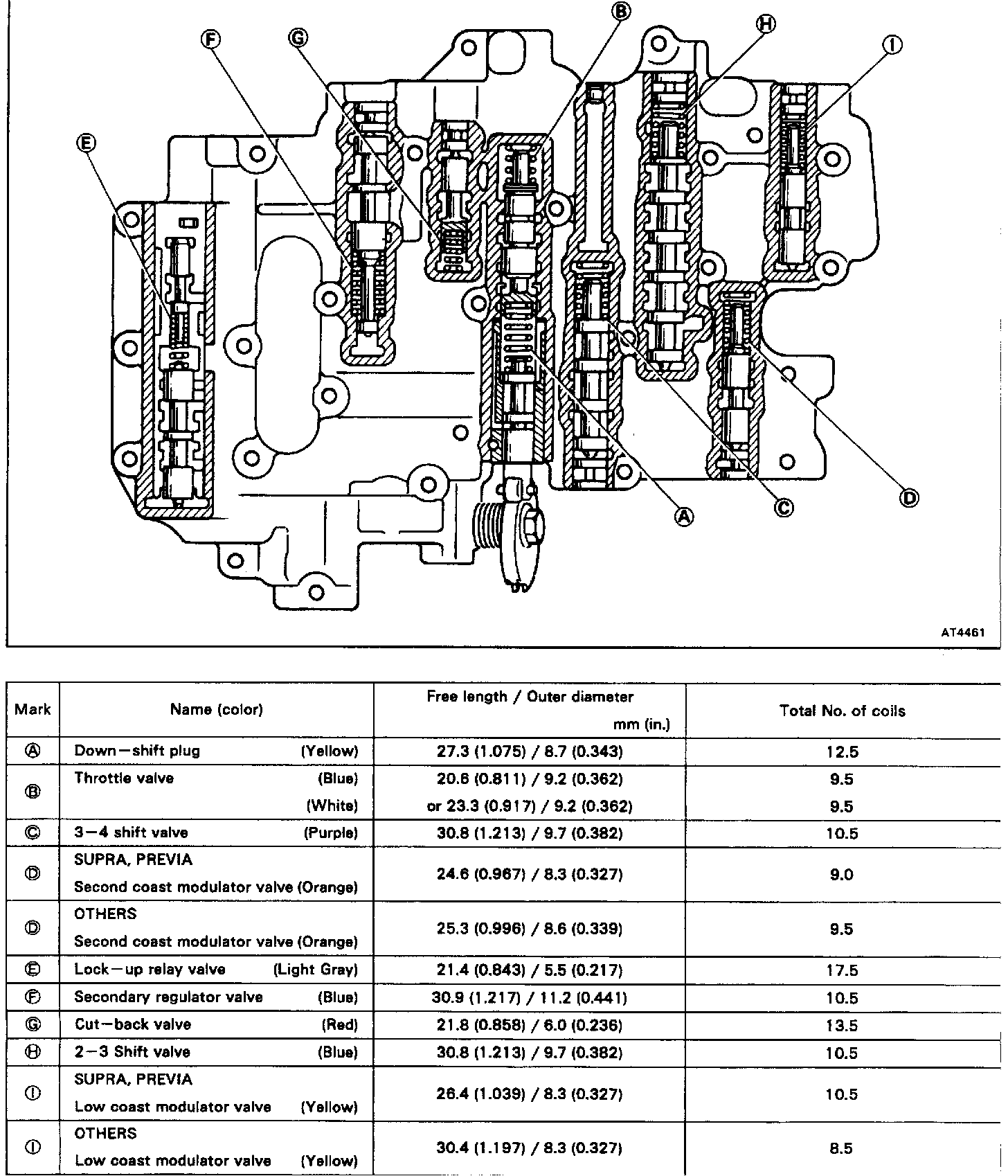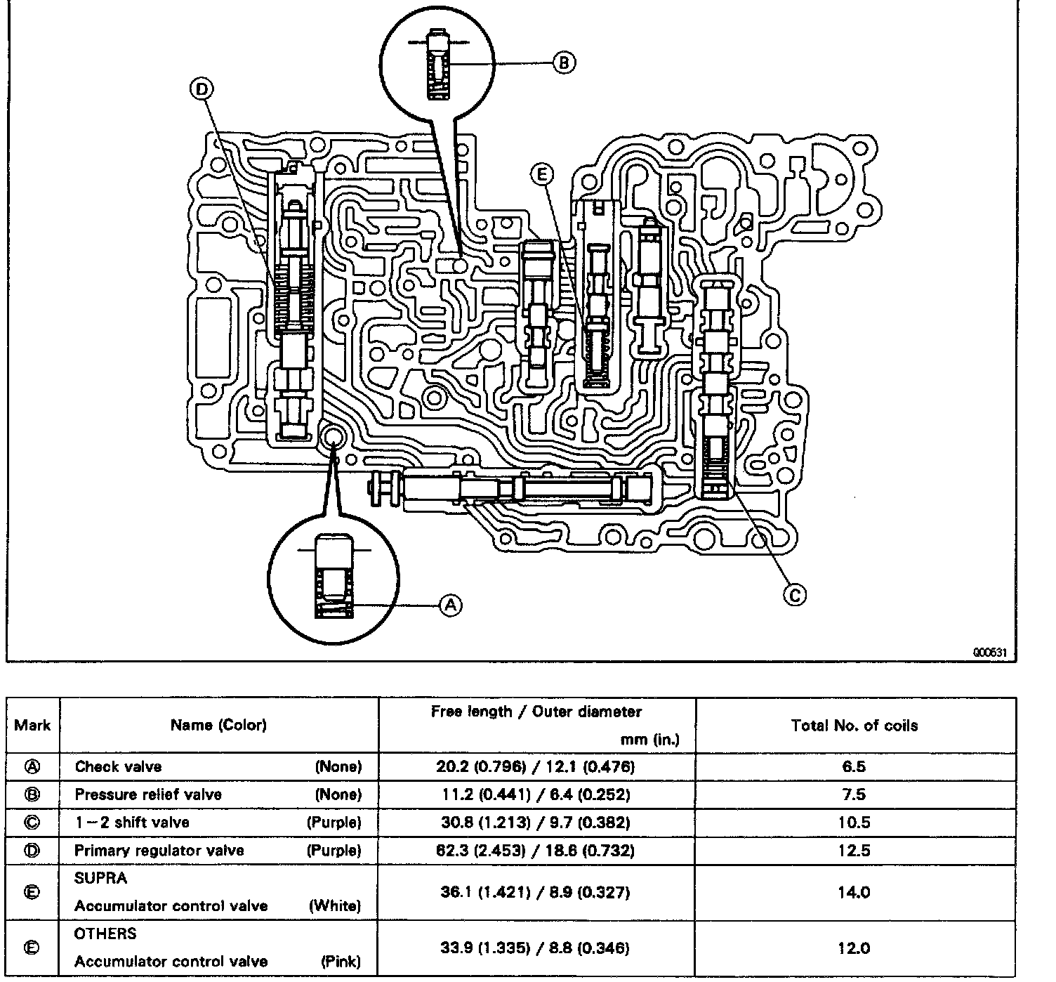 VALVE BODY SPRING SPECIFICATIONS