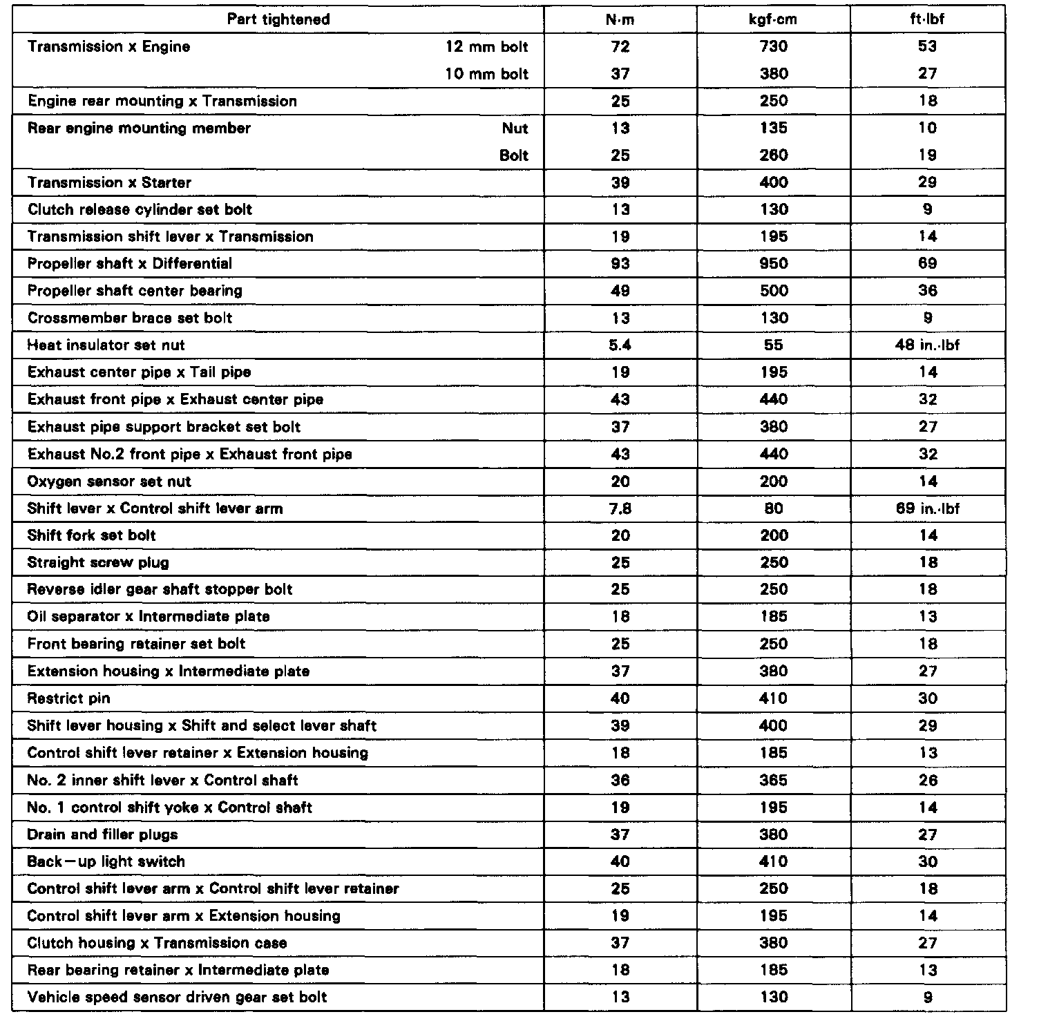 M/T Torque Data