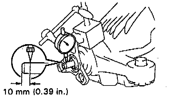 4. Check ring gear backlash. Measure the backlash of the ring gear and drive pinion at three points (minimum) and check that the average value is within the specification.