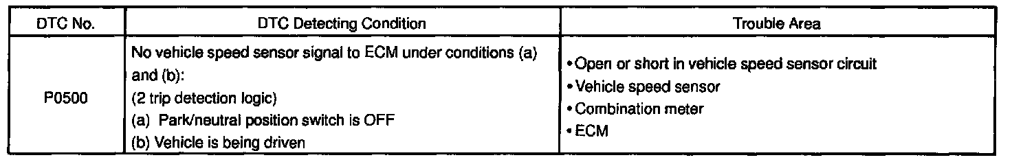 DTC P0500 - Vehicle Speed Sensor Malfunction