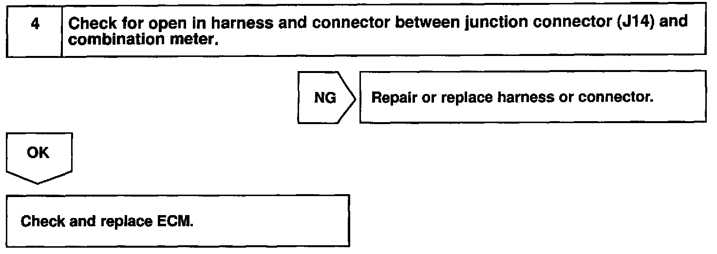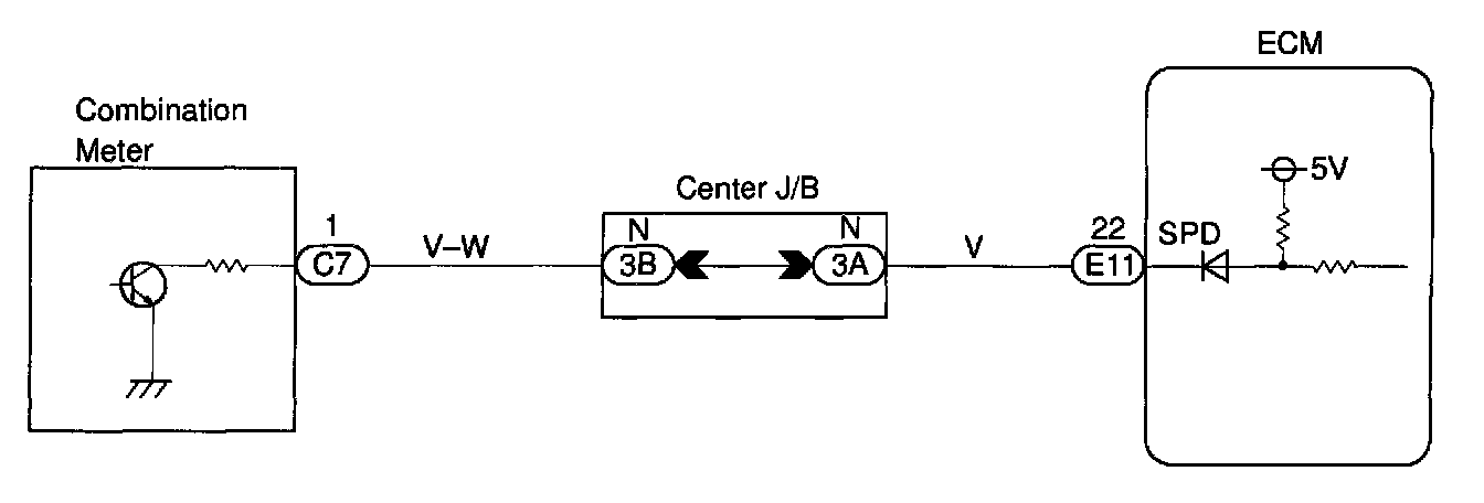 The vehicle speed sensor outputs a 4-pulse signal for every revolution of the rotor shaft, which is rotated by the transmission output shaft via the driven gear. After this signal is converted into a more precise rectangular waveform by the waveform shaping circuit inside the combination meter, it is then transmitted to the ECM. The ECM determines the vehicle speed based on the frequency of these pulse signals.