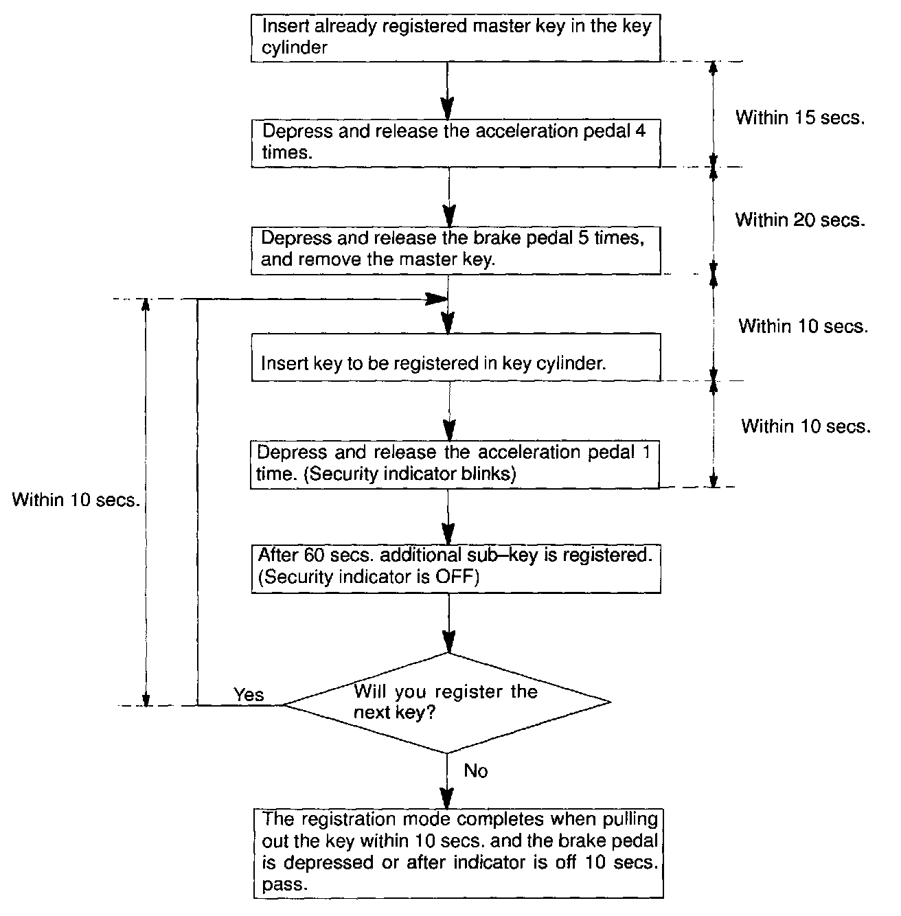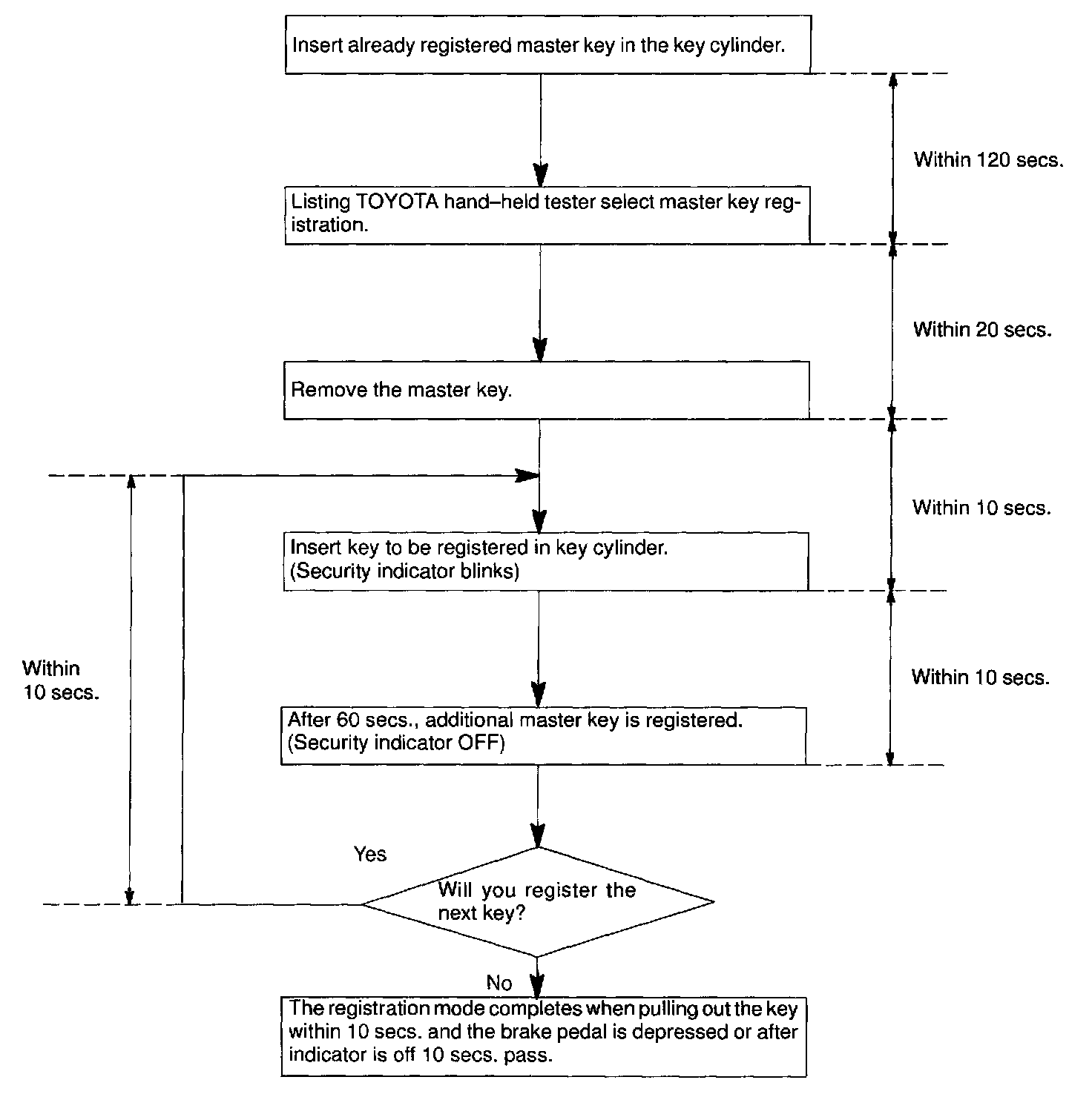 There are 2 ways for registration of additional master key, one is depressing brake pedal and acceleration pedal and the other is using TOYOTA hand-held tester.