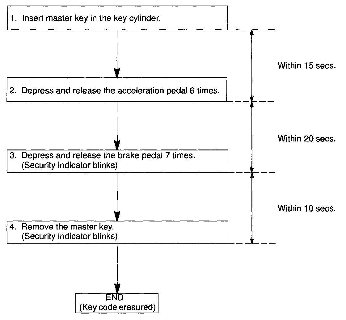 There are 2 ways for erasure of transponder key code, one is depressing brake pedal and acceleration pedal and the other is using TOYOTA hand-held tester.